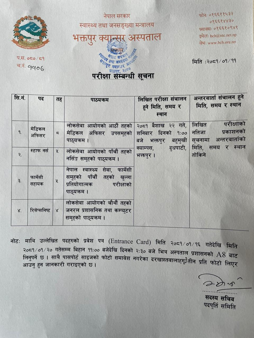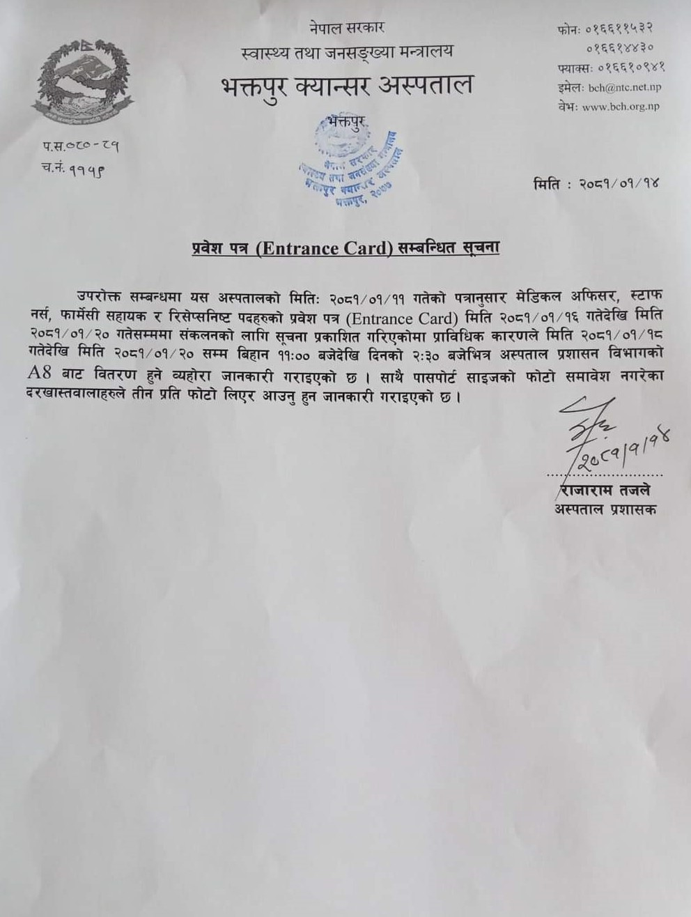 - परीक्षा र प्रवेश पत्र (Entrance Card) सम्बन्धी सूचना ।