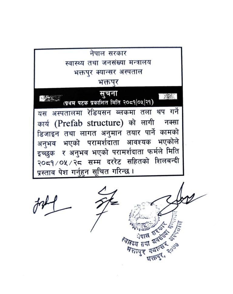 - परामर्शदाता फर्मको आवश्यकता सम्बन्धि सूचना ।